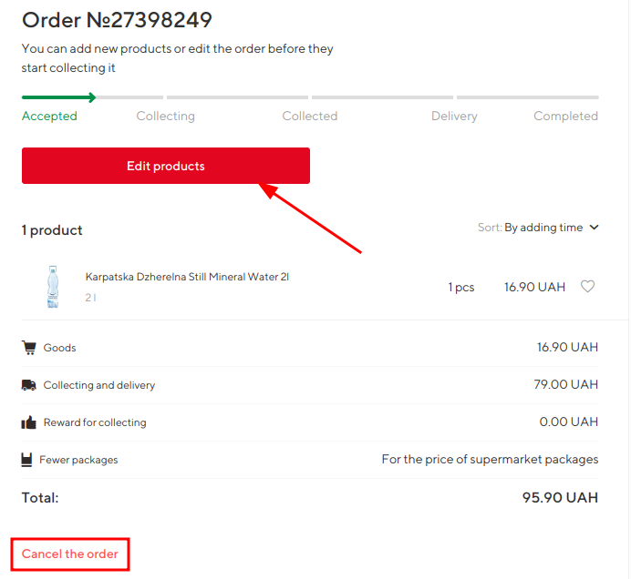 After confirming the order, you can still make changes to it, as long as it is not in the "In progress" status. You can do this yourself through the website or in the application, the "My Orders" section of your personal account. Namely, you can by going to the order: