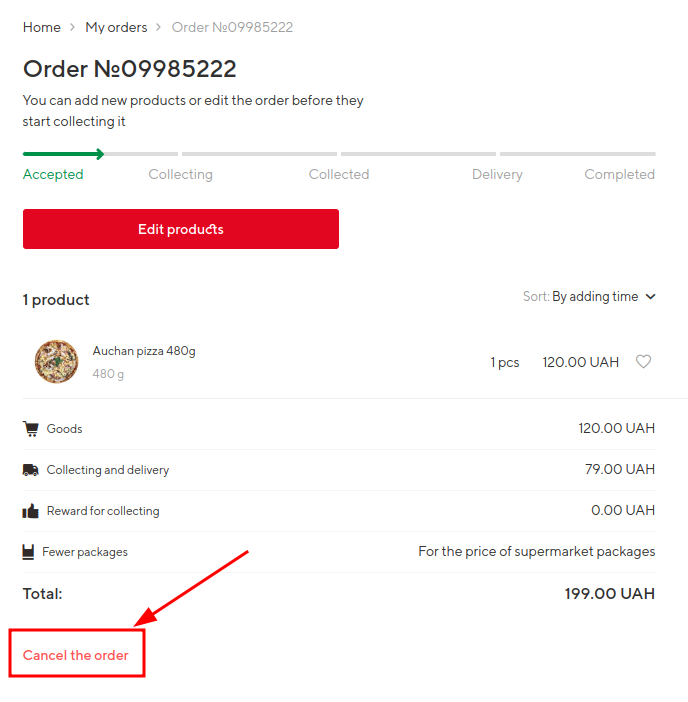 How to Cancel Your Order Yourself (Statuses before "Delivering"):