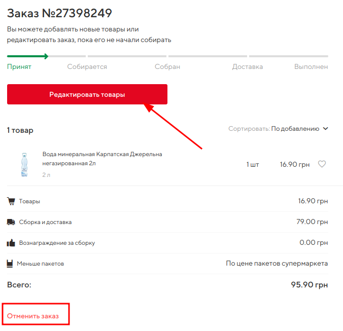 Если Вы видите, что заказ уже комплектуется, не пытайтесь изменить его самостоятельно.