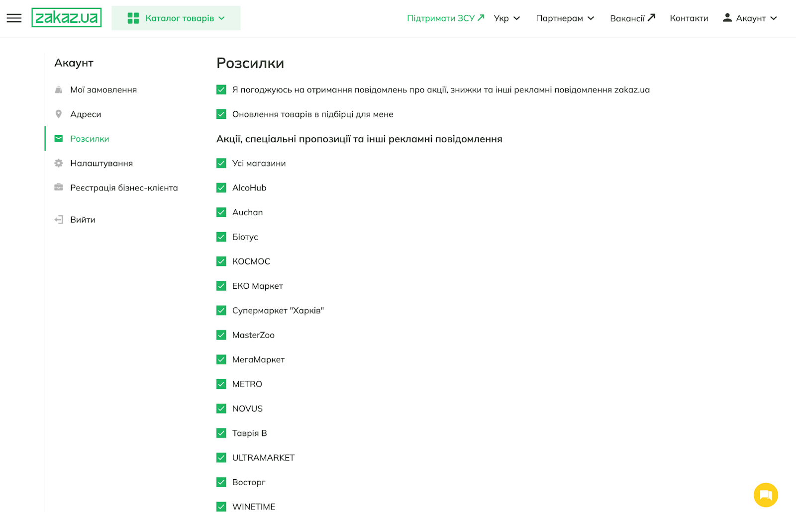 Зверніть увагу, що відмова від розсилок означатиме, що Ви також не отримуватимете важливі інформаційні сповіщення про нові промо-активності, а також додаткові, ексклюзивні знижки на доставку чи товари.